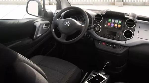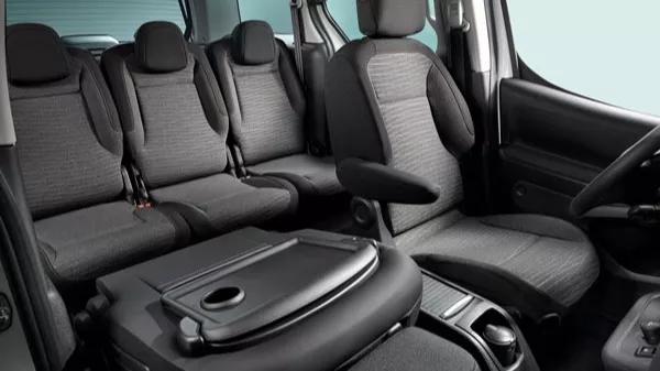 Hoewel de Berlingo het levenslicht zag als bedrijfswagen, voelt hij niet als een ‘busje’ aan. Je zit weliswaar wat hoger, maar het dashboard houdt gelijke tred met de bestuurdersstoel. Zo krijg je toch het idee met een reguliere auto onderweg te zijn. Je kunt wel merken dat het basisontwerp uit 2008 stamt; een aanvullende veiligheidsuitrusting ontbreekt. Het zicht rondom is dankzij het grote glasoppervlak dan wel weer op orde. En aan de andere kant: juist omdat de Citroën al wat ouder is, koop je met deze Berlingo nog een ouderwetse, Frans comfortabele auto. Dankzij de alternatieve aandrijflijn neemt dat rijcomfort alleen maar verder toe: je hoort de motor tenslotte niet langer. De personenbus is in de eerste plaats een functionele auto: vanwege de hoge koets en de doodse besturing is dit geen model waar je spontaan mee gaat toeren. Dat geeft niks, maar het is wel vervelend dat de zittingen van de voorstoelen zo kort zijn. Ook als je een vervoermiddel zoekt om louter mee van A naar B te rijden, wil je fatsoenlijk zitten. De automaat werkt met een draaiknop; alsof je de verlichting aan zet. Dat is even wennen, maar scheelt wel ruimte tussen de voorstoelen. Een trekgewicht ontbreekt: er mag geen aanhanger achter de auto. Het grootste manco van de e-Berlingo is echter zijn beperkte topsnelheid: bij 115 kilometer per uur is de koek op. Een vrachtwagen inhalen lukt nog wel, maar een andere personenwagen passeren blijkt een hele klus.De Citroën e-Berlingo Multispace van binnen
