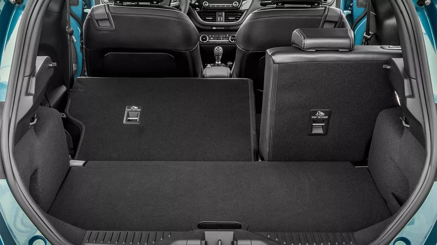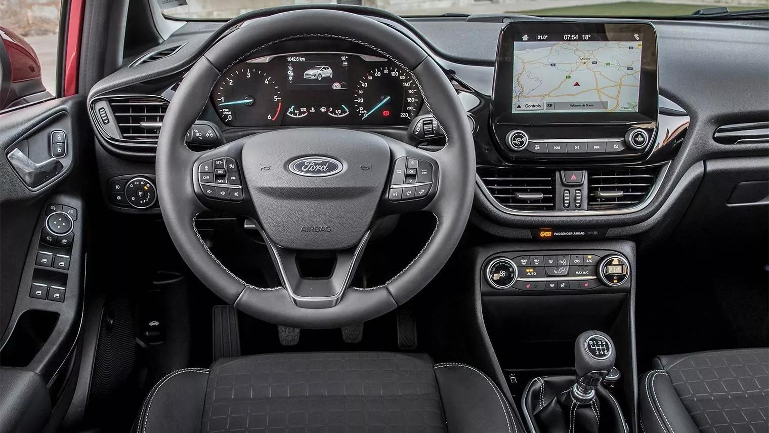 Achter het stuur zit je in de Fiesta prima. Stuur en stoel zijn goed verstelbaar zodat je altijd een fijne zitpositie vindt. Het zicht op de instrumenten is goed en de bedieningen zitten op logische plaatsen. Onze testauto is door de gekozen kleurstelling helaas wel erg donker van binnen. Het donkere hemeltje – een extra – maakt de boel nog somberder. Het zicht rondom vanaf de bestuurdersstoel is, zoals in zoveel moderne auto’s, niet erg goed. De raamstijlen zijn breed en het zicht door de achterruit is ook niet riant. Gelukkig kun je bij Ford voor een achteruitrijcamera terecht, al is dat nogal een puzzelwerk. Het accessoire maakt deel uit van diverse optiepakketten, die voor verschillende uitvoeringen verkrijgbaar zijn. Hoe dan ook ben je voor de meeste rijhulpsystemen een meerprijs verschuldigd. Verwacht ook niet dat je de Ford als verhuiswagen kunt inzetten. De achterbak biedt 311 liter ruimte en dat is niet bepaald baanbrekend in dit deel van de markt. Je mist bovendien vlakke laadvloer. Op de achterbank prik je als volwassene met je knieën in de rugleuning van degene voor je. De hoofdruimte is nét aan. Verder zal je het op de achterbank moeten stellen zonder een stroomvoorziening of ventilatieroosters.