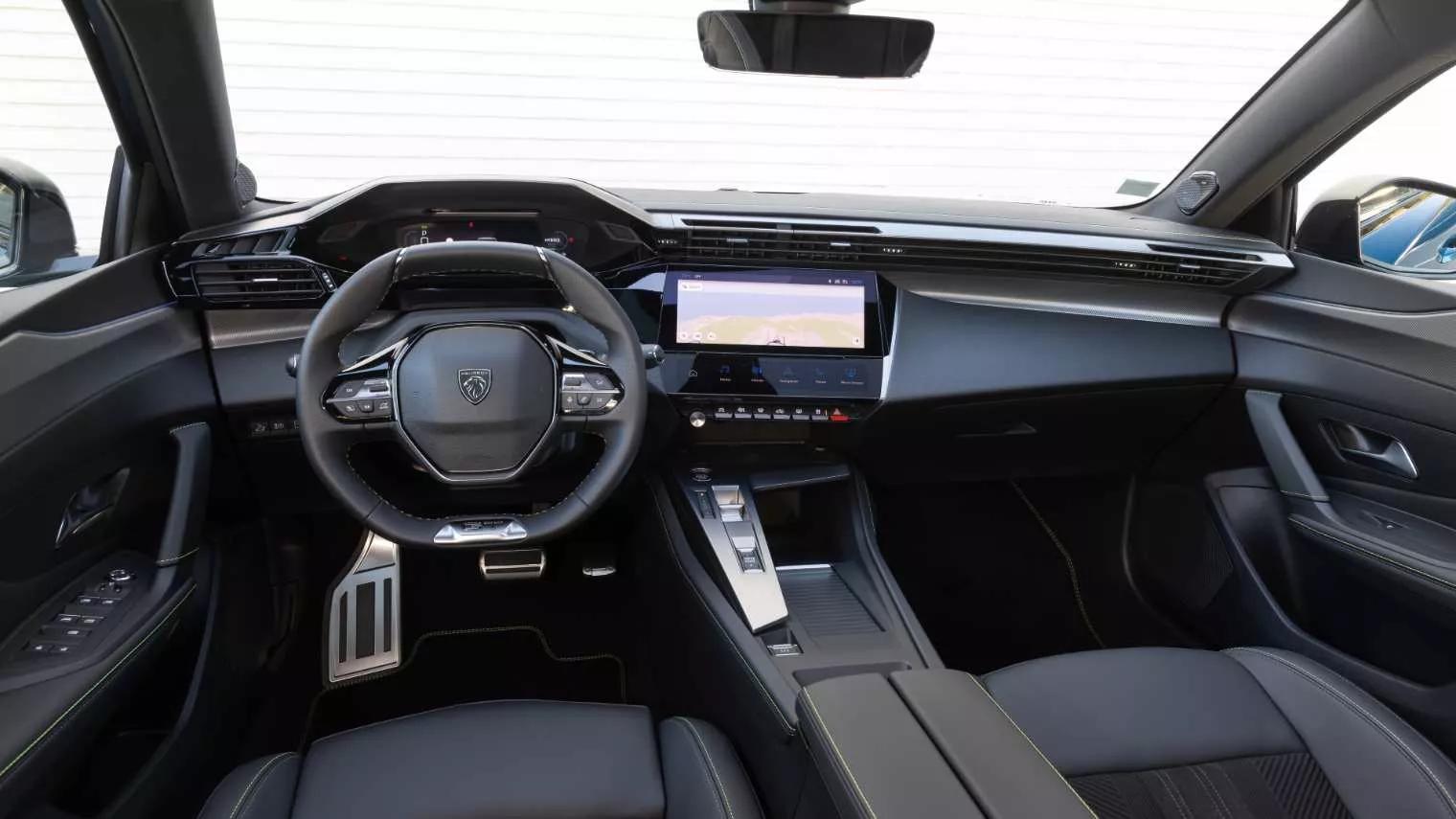 Het interieur is een-op-een overgenomen uit de 308. Dat betekent een driedimensionaal dashboard, een groot infotainmentscherm en een minimum aan traditionele bedieningsknoppen. In een aantal gevallen kun je zelf bepalen welke functionaliteit er achter die knoppen schuilgaat.