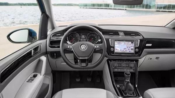 De Touran mag er dan voor het eerst in 12 jaar anders uitzien, het grootste verschil met eerdere generaties vinden we onderhuids. Voortaan wordt de gezinsauto gebouwd op hetzelfde platform waarop ook modellen als de Seat Leon, Audi A3 en Volkswagen Passat zijn gestoeld. De nieuwe Touran stuurt precies en ligt stevig op de weg. Wij reden met de 150 pk sterke 2.0-liter dieselversie, vooralsnog de sterkste zelfontbrander die je onder de kap van de gezinsauto kunt bestellen. Met deze krachtbron kom je niets tekort, al kampt hij met de kwaal waar wel meer turbomotoren van Volkswagen last van hebben. Geef je gas, dan gebeurt er in eerste instantie weinig. Daarna sleurt hij je mee als een hond die een haas ziet. Zolang je niet aan het invoegen of inhalen bent, heb je daar echter weinig last van: de Touran laat zich verder gedwee en schakellui rijden. De 2.0-liter diesel is ook nog eens aangenaam stil. Het zicht rondom is dankzij het grote glasoppervlak in orde, al zie je over je schouder nog altijd weinig door de dikke omlijsting van de achterklep. De veiligheidsuitrusting van de gezinsauto is flink uitgebreid met onder meer adaptieve cruise control, een rijstrookassistent en een dode hoek verklikker. Die laatste is niet te missen; in de omlijsting van de toch al niet misselijke buitenspiegels zit een minstens zo groot lichtelement. Deze systemen zijn optioneel, net als de fileassistent: de Touran neemt dan bij stapvoets rijden het gas geven en remmen van je over. Standaard is de Volkswagen uitgerust met een systeem dat voorkomt dat de gezinsauto doorschuift bij een aanrijding van achteren. Een hulpsysteem dat niets met veiligheid, maar alles met gemak van doen heeft, is de van de Passat afkomstige assistent die je helpt bij het parkeren van een aanhanger. Als je het ons vraagt, is het een briljante zet van Volkswagen om deze zogenaamde ‘Trailer Assist’ ook op de Touran te leveren.De Volkswagen Touran 2.0 TDI van binnen