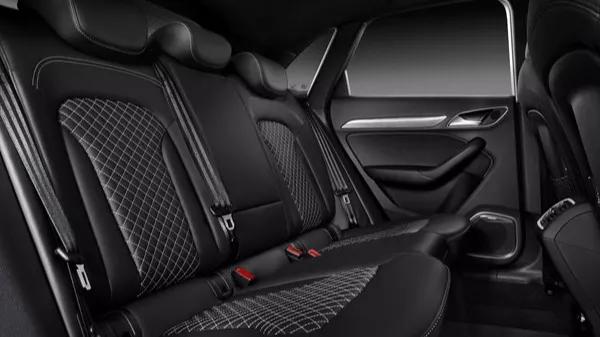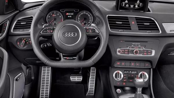 Bij de facelift van begin 2015 is het interieur van de Q3 ongemoeid gelaten. Het steekt nog altijd voortreffelijk in elkaar, maar oogt wat gedateerd. Zo bevindt het scherm van het infotainmentsysteem zich bovenop het dashboard en moet je dat handmatig tevoorschijn toveren. Verder zien de knoppen van de airconditioning er uit alsof ze eind jaren ’90 al in een Audi zaten. De bagageruimte is met minimaal 460- en maximaal 1.365 liter gemiddeld: die van de BMW X1 is groter, maar de kofferbak van de Mercedes GLA slikt tientallen liters minder. Wel is de bagageruimte wat ondiep. De Q3 is weliswaar voorzien van een dubbele laadvloer, maar onder de bodem is er hoofdzakelijk ruimte voor het reservewiel; de laadruimte die overblijft, mag geen naam hebben. Een aangename verrassing is de forse binnenruimte voor de achterpassagiers. Zelfs wanneer je langer bent dan 1.90 meter, zit je met hoofd en benen vrij. Om achterin te komen, moet je wel over de wielkuip heen stappen. Omdat je ook achterin hoog zit, valt het ongemak mee.De Audi RS Q3 en het milieu
