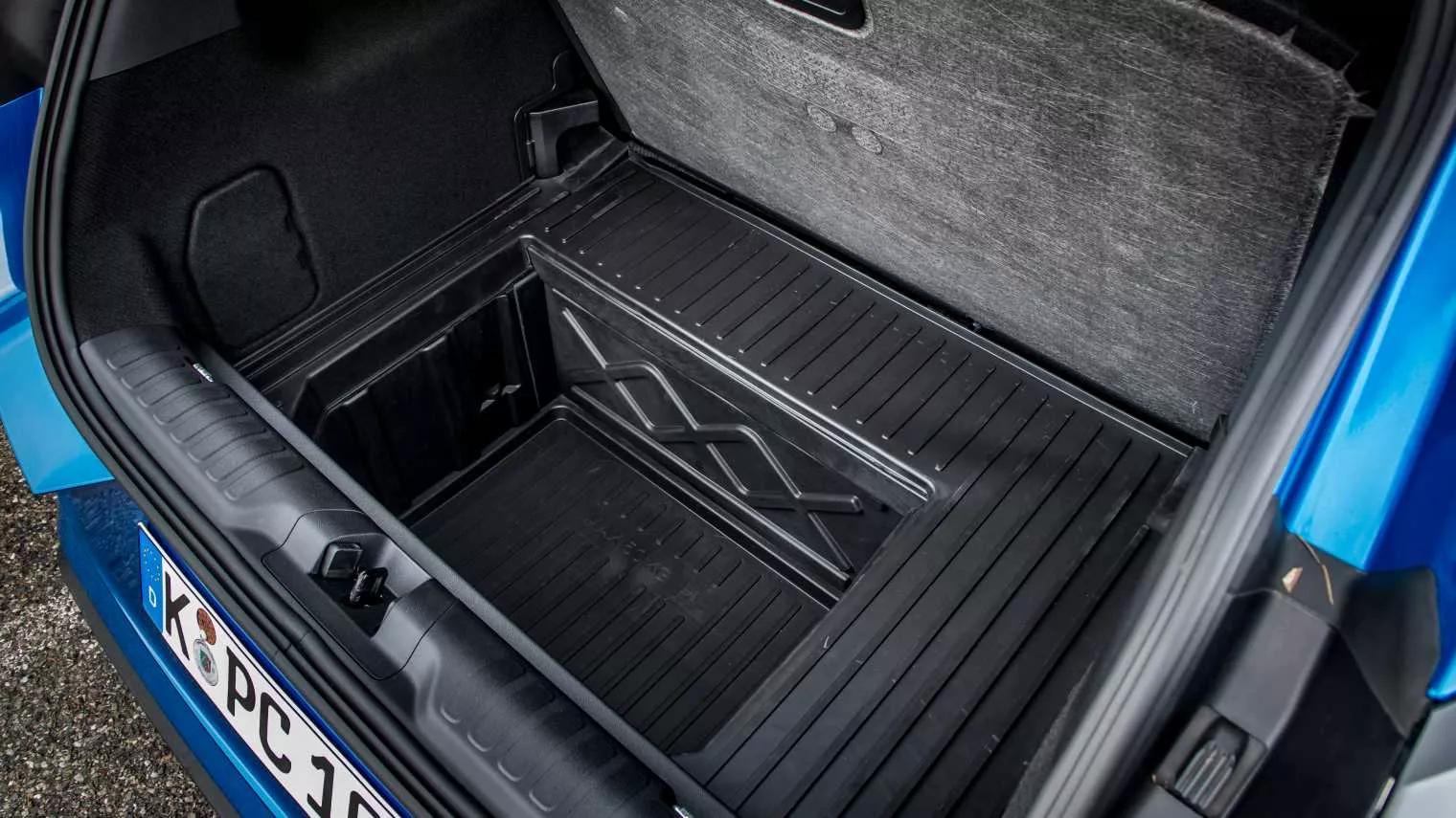 Het binnenste van de Puma biedt een vertrouwde aanblik: je kijkt uit op het instrumentarium van de Fiesta, met een infotainmentsysteem dat bovenaan de middenconsole prijkt. Fords nieuwste crossover heeft de primeur van een digitale klokkenwinkel, waarvan de mogelijkheden overigens beperkt zijn. In de huidige hoedanigheid is het in feite een veredelde boordcomputer: zo kun je bijvoorbeeld niet de navigatiekaart tussen je meters tevoorschijn toveren. Iets wat bij concurrerende fabrikanten wél tot de mogelijkheden behoort. Een Renault Captur of Nissan Juke kun je dan weer niet met massagestoelen (!) bestellen, of afritsbare bekleding voor wanneer er bij een bezoekje aan de drive-in per ongeluk frietsaus op de achterbank belandt.Beide zaken zijn overigens niet leverbaar op de door ons gereden ST-Line variant. Het grootste wapenfeit van de Puma is gelukkig op álle versies aanwezig: de bijzondere opbergruimte onderin de kofferbak. Het betreffende vak, door Ford aangeduid als Megabox, is verrassend diep, zodat je rechtop grotere voorwerpen kunt vervoeren. Stel dat je kiest voor een kamerplant, dan hoef je over wat gemorste aarde niet in te zitten: de ruimte is waterdicht en je vindt een stop onderin, zodat je dit deel van de kofferbak eenvoudig met de tuinslang kunt schoonspuiten. De bagagebodem die dit handigheidje aan het zicht onttrekt, is ook nog eens in hoogte verstelbaar en maakt op die manier een vlakke laadvloer mogelijk. Verder vinden we in de kofferbak een stroompunt en twee haakjes voor de boodschappentassen. De achterklep kun je naar wens elektrisch laten uitvoeren; een voetbeweging volstaat om hem te openen. De inhoud van de bagageruimte is met minimaal 456 liter serieus groot. De achterpassagiers komen er bekaaider vanaf: weliswaar is de wielbasis van de semi-terreinwagen 12 centimeter gegroeid ten opzichte van de Fiesta, maar wie langer is dan gemiddeld, zit met zijn kruin tegen het plafond en z’n knieën in de rug van de voorpassagier. Daarnaast ontbreken een stroompunt en ventilatieopeningen voor de inzittenden achterin.