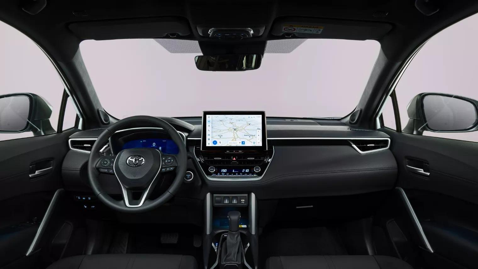 De Corolla Cross Hybrid is een keurige, maar geen bijzondere auto om te zien. Als je een rondje om de auto loopt zie je wél leuke details. Zo hebben sommige versies een verchroomdestrip aan de bovenkant van de ramen. Bij de onderzijde van de achterportieren zie je een wat apart lijnenspel. Verder de typische vierkante wielkastenen plastic randen rond de wielkuipen en bij de dorpel om hem stoerder te maken. Aan de voorzijde een forse grille met daarin het logo. En aan de achterzijde brede horizontale achterlichten.