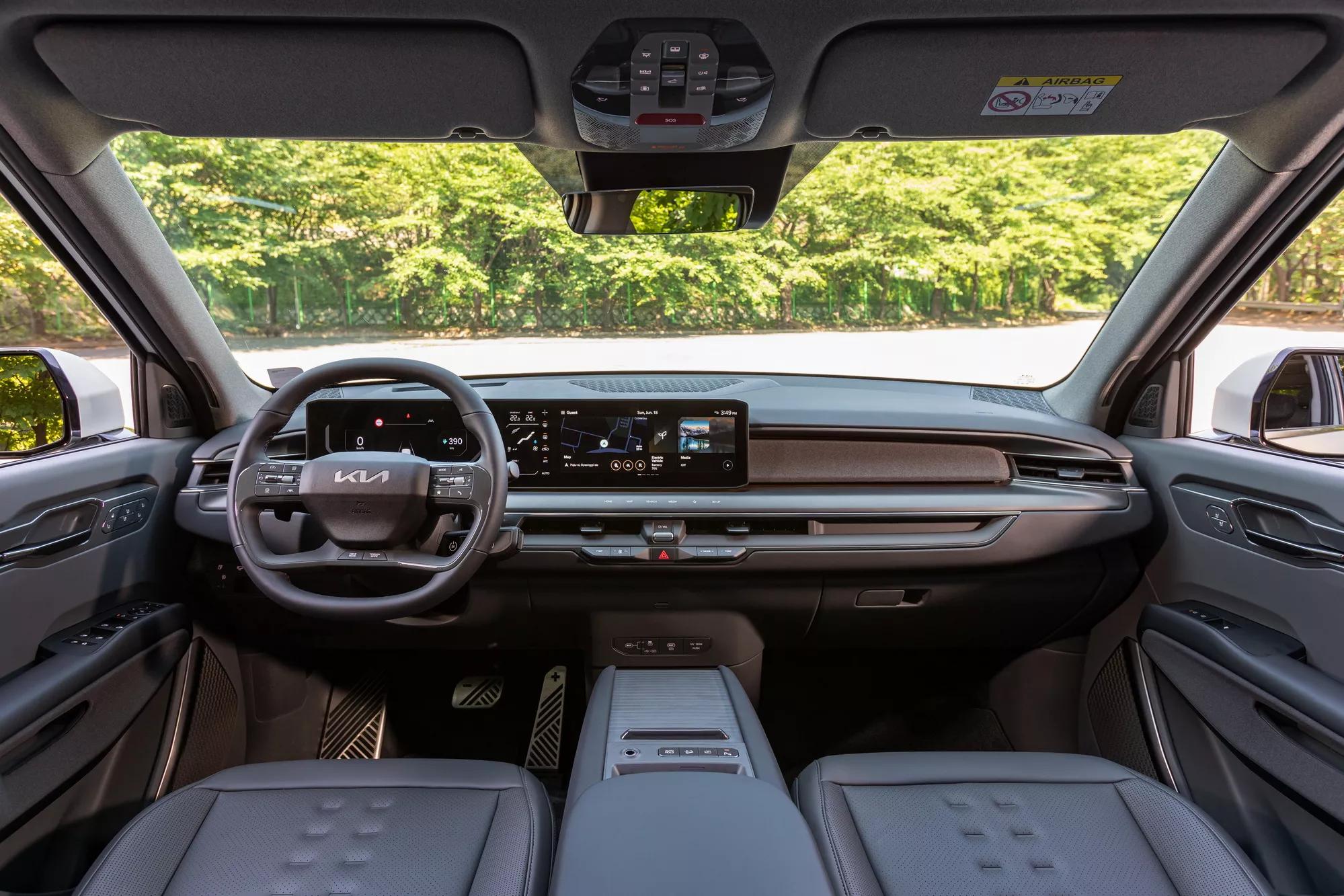 In een tijdsbestek van tien jaar is Kia opgeklommen tot een beeldbepalende speler in de wereld van de elektrische auto. De Koreanen gaven ons al een exclusieve klimaatcontrole voor de bestuurder (zodat er geen energie verloren gaat bij het koelen of verwarmen van de rest van de cabine), invloed op de manier waarop er remenergie wordt teruggewonnen, een spectaculaire laadsnelheid en de mogelijkheid stroom terug te leveren aan een koffiezetapparaat, laptop of wasmachine. In de EV9 kun je nu met de complete familie van al die functionaliteiten profiteren.