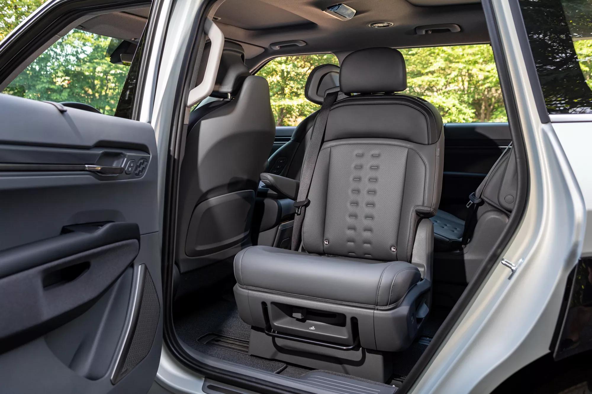 We schreven al eerder dat de SUV optioneel kan worden uitgerust met zes zitplaatsen. De reguliere achterbank wordt dan vervangen door twee losse stoelen, die je 180 graden kunt draaien. Ideaal voor het bevestigen van een kinderzitje. Je mag er volgens Kia Nederland zelfs ‘omgekeerd’ op zitten tijdens lange autoritten. Gezellig, maar dan is het wel zaak dat je de persoon tegenover je goed kent: je zit in deze configuratie namelijk met je benen in elkaar gehaakt.