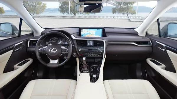 In vergelijking met de tweede generatie heeft de hybride aandrijflijn van de huidige RX er 23 pk bij gekregen. Het totale vermogen komt daarmee op 313 pk, het maximale koppel bedraagt 335 Nm (dat was voorheen 317 Nm). Het trekgewicht is 2.000 kilogram. Hoewel je qua prestaties niets tekort komt, voelt de Lexus geen moment als snel: de SUV weegt dan ook twee ton. Juist daarom hebben we onze bedenkingen bij de twee verschillende sportstanden waarmee de semi-terreinwagen is uitgerust. Ze doen niets voor de snelheidsbeleving, behalve dat de traploze automaat opnieuw hinderlijk op de voorgrond treedt. Een storend geluid, bij de Japanners inherent aan dit type aandrijflijn, terwijl de Lexus ingenieurs juist zo hard hebben gewerkt aan het terugdringen ervan. In de reguliere rijmodus – waarvoor je speciaal een knop moet indrukken; de overige rijstanden werken met een draaiknop – is het hoofdzakelijk de zacht zoevende V6 die je hoort. Die soundtrack past beter bij het soevereine rijgedrag van de RX, waarin je heel comfortabel kilometers kunt maken. Rustig door de bocht is het devies, want bij een dynamische rijstijl gaat de Lexus een beetje ‘hangen’. Bovendien bieden de stoelen weinig zijdelingse steun en beginnen de voorwielen al gauw te piepen, om aan te geven dat de maximale grip is bereikt. De (hoge) zitpositie is goed, het uitzicht rondom een stuk minder. De ramen zijn klein en de stijlen juist fors. Gelukkig beschikt de RX standaard over een uitgebreid pakket aan veiligheidsvoorzieningen, waaronder verkeersbordherkenning, rijstrookassistentie (alleen geluid), een parkeerhulpcamera en adaptieve cruise control. Dode hoek signalering, een waarschuwing bij kruisend verkeer aan de achterzijde van het voertuig en een rijstrookassistent die de Lexus zélf binnen de lijntjes houdt, zijn voorbehouden aan de twee duurste uitrustingsniveau’s. De hulpsystemen kunnen niet los worden bijbesteld. Hoewel onze testauto van de complete veiligheidsuitrusting was voorzien, hebben we toch een paar aanmerkingen. Zo toont de actieve rijstrookassistent zich nogal wispelturig (het ene moment corrigeert hij wel, het andere niet) en is het hinderlijk dat je elke keer de volgafstand van de adaptieve cruise control opnieuw moet instellen. Andere fabrikanten hebben daarvoor een geheugenfunctie.De Lexus RX 450h van binnen