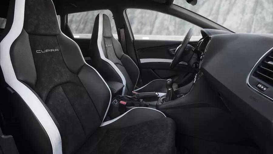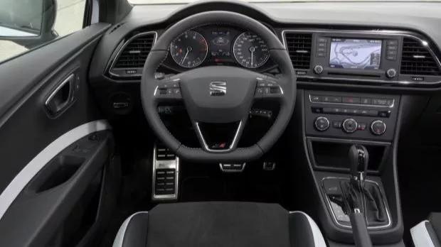 De Seat Leon ST Cupra 280 rijdt zoals je van een zo sportieve auto verwacht. Hij is stevig geveerd – al wordt dat nooit oncomfortabel – en hij is pijlsnel. Vooral in tussen-acceleraties schrik je de eerste keer van manier waarop hij doortrekt. De testauto is uitgerust met een DSG-bak. Dat is een automaat met een dubbele koppeling. We besparen je de technische details maar waar het op neerkomt is dat zo’n bak ultrasnel schakelt. Wat de cijfers betreft, de Seat Leon ST Cupra 280 schiet in zes seconden vanuit stilstand naar 100 km/h en haalt een (begrensde) topsnelheid van 250 km/h. Ideale auto dus om mee over de Duitse Autobahn naar de vakantiebestemming te rijden. Ook een bocht ronden met deze auto is een feest. Onder meer dankzij een mechanisch sperdifferentieel heb je heel veel grip en stuurt hij zo scherp als een scheermes. Wat de wegligging betreft, je kun de demping aanpassen. In de stand comfort is het een prettig geveerde auto, in de stand Cupra is hij vooral geschikt voor een dagje boenderen op een circuit. De Leon is dan snoeihard geveerd en de karakteristiek van de automaat is dan ook anders. Geweldig als je een keer echt gas wilt geven. Het onderstel is overigens standaard 25 millimeter lager dan van een gewone Leon ST. Minpunten zijn er ook. Zo is de Leon ST Cupra 280 door zijn brede banden erg gevoelig voor sporen in het wegdek en zorgen diezelfde banden ook voor flink wat lawaai.De Seat Leon ST Cupra 280 van binnen
