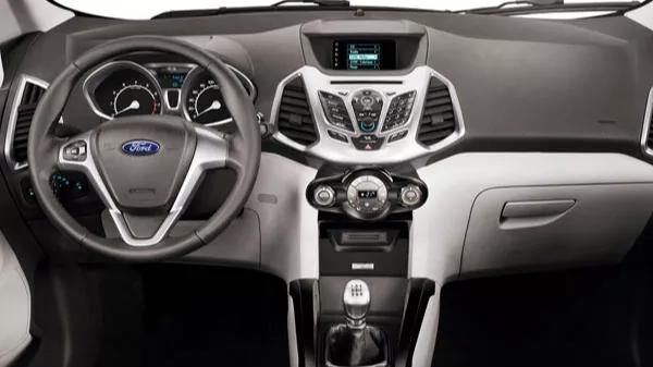 De bagageruimte is wat kleiner dan bij concurrerende modellen. Een eigenaardigheidje is de hoedenplank, die wel kan scharnieren, maar ook rechtop kan blijven staan. Dan is het zicht in de binnenspiegel ineens minimaal. In plaats van een achterklep heeft de EcoSport een grote deur, die naar links scharniert. Het reservewiel zit bij de eerste exemplaren op deze deur, die daardoor wel erg zwaar is. Bij de latere exemplaren ontbreekt in vrijwel alle gevallen niet alleen het reservewiel, maar ook de mogelijkheid om er eentje op een daarvoor bestemde plaats mee te nemen. Het instrumentarium is best overzichtelijk, maar sommige details zien er toch net iets anders uit dan we hier in Europa in het algemeen gewend zijn. De 1,0 liter driecilinder laat onder het rijden wat meer van zich horen dan we dit in andere Ford-modellen met dezelfde motor gewend zijn. De vijfbak schakelt voortreffelijk. Gemiddeld rijdt de EcoSport met de 1,0 liter motor 1 op 13 á 14.
