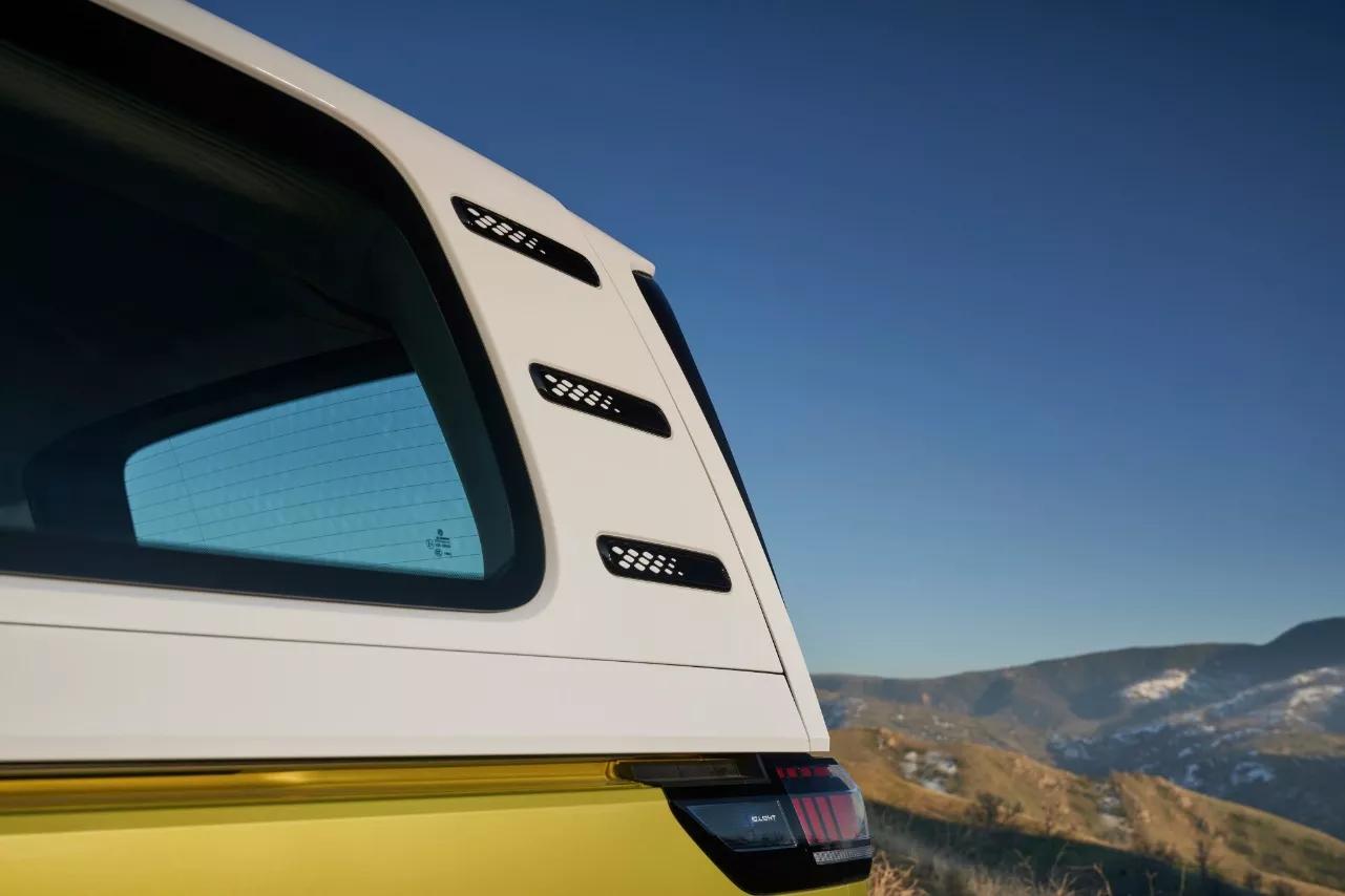 De stoelbekleding is gemaakt van hergebruikte pet-flessen en plastic dat uit de oceaan is gevist. Verder is er nepleer gebruikt, wel zo diervriendelijk. Je kunt de middentunnel eruit halen zodat je gemakkelijker naar achteren kunt kruipen – vooral fijn wanneer je kleine kinderen hebt. In de bak zit een flessenopener in, die tevens dienst doet als ijskrabber. De Volkswagen heeft elektrisch bedienbare, grote schuifdeuren zodat je in een krap parkeervak ook kunt uitstappen.