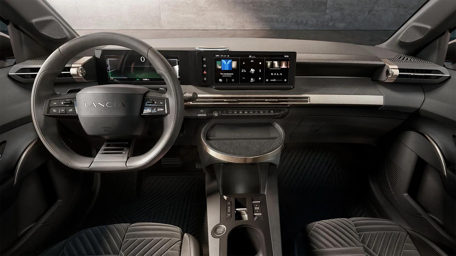 Je kunt, als je dat prettig vindt, lekker laag in de auto zitten en toch een goed zicht hebben op zowel de weg als het instrumentarium. Door de prachtige vormgeving van het dashboard en de deurpanelen krijg je het gevoel in iets exclusiefs rond te rijden. Misschien is de enige misser dat het infotainmentscherm wat klein en eenvoudig oogt en een schril contrast vormt met de rest van het dashboard. De ronde vormen van de achterlichten – een rechtstreekse verwijzing naar de wereldberoemde Lancia Stratos waarmee Lancia in de jaren 70 drie keer het Wereldkampioenschap Rally binnensleepte – vind je overal in het interieur terug. Bijvoorbeeld bij de deurgrepen en in de vorm van het koffietafeltje.