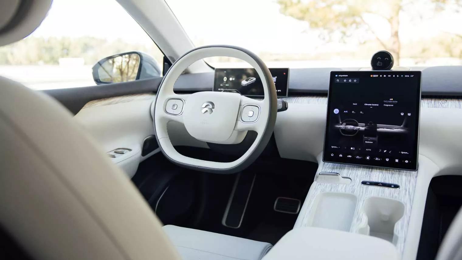 Wanneer je de moeite neemt zelf door het menu van het infotainmentsysteem te spitten, stuit je op meer opvallendheden. De dagteller was bij onze testauto bijvoorbeeld beveiligd met een wachtwoord. En alle spraakcommando’s die je geeft, blijken buiten de auto te worden opgeslagen. Dat kun je verhinderen door een schuifje om te zetten, maar in dat geval waarschuwt NIO dat Nomi je minder goed zal kunnen helpen. Het is maar waar je de voorkeur aan geeft.