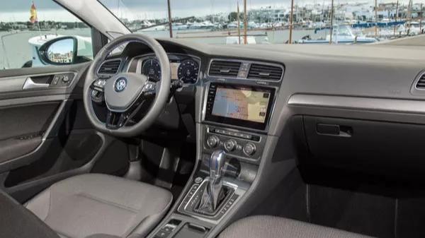 Moet je goed kijken om de elektrische Golf aan de buitenzijde van een exemplaar op benzine of diesel te onderscheiden, de rijeigenschappen zijn al even inwisselbaar. Een groter compliment kun je de auto niet maken, want zelfs met deze alternatieve aandrijflijn doet de Volkswagen dus vertrouwd aan. Dat betekent een intuïtieve bediening en een rijbeleving die het midden houdt tussen sportief en comfortabel. De zitpositie is wel anders: je zit iets hoger achter het stuur dan in de reguliere versies. Met behulp van een drietal rijmodi kies je eenvoudig de manier waarop je onderweg wilt zijn: van razendsnel tot begrensd (in de strengste spaarstand werkt de verwarming niet en kun je maar 95 kilometer per uur). De keuzehendel van de automaat dient niet alleen om te bepalen of je voor- of achteruit wilt, maar kan ook worden gebruikt om de mate te bepalen waarin remenergie wordt teruggewonnen. In de felste stand hoef je nauwelijks nog je rempedaal te gebruiken. Laat je de pook in ‘D’ staan, dan rolt de e-Golf juist lang uit. Dergelijke techniek betrekt je extra bij het autorijden; het wordt al gauw een sport om je zo vloeiend mogelijk door het verkeer te begeven. De vernieuwde Volkswagen komt niet alleen verder op een lading stroom, hij is ook sneller geworden. Voortaan levert zijn elektromotor 136 pk. Behalve een bekend uiterlijk en soortgelijke, ijzersterke rijeigenschappen kun je de elektrische Volkswagen uitrusten met dezelfde veiligheidsvoorzieningen als de reguliere Golf. Adaptieve cruise control wordt standaard meegeleverd, evenals vermoeidheidsherkenning en een zelfstandig remsysteem bij stadssnelheden. Actieve rijstrookassistentie staat op de optielijst, maar bestel je dat systeem mee, dan kan de e-Golf ook meteen zelfstandig filerijden. Voor dode hoek signalering moet eveneens worden bijbetaald. Een gevoelig punt is de geluidssimulator die de importeur tegen meerprijs aanbiedt. Die stelt voetgangers en fietsers in staat om de geruisloze gezinsauto bij lage snelheden te horen aankomen. Het valt te prijzen dat de Duitsers aan een dergelijk systeem hebben gedacht, maar waarom moet het dan € 142 kosten?De Volkswagen e-Golf van binnen
