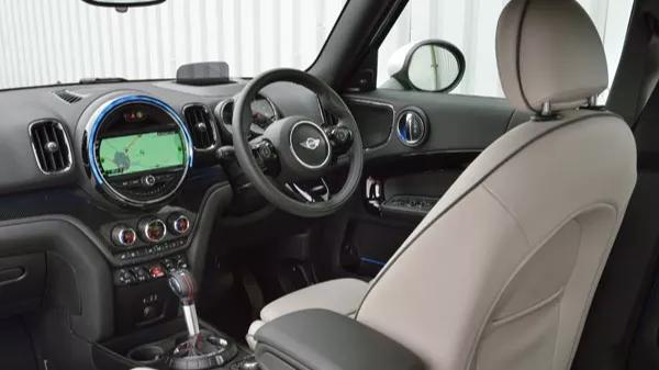 Voor een compacte crossover is de Countryman met een leeggewicht van 1.340 kilogram behoorlijk aan de maat. Toch voelt hij watervlug, wat geen verbazing wekt wanneer je bedenkt dat Mini met een afgeleide van deze auto al herhaaldelijk de Dakarrally heeft gewonnen. Wij reden met de eenvoudigste uitvoering; een 136 pk sterke driecilinder met turbo. Hoewel je op basis van die omschrijving wellicht naar een krachtiger motor zou verlangen, blijk je daar in de praktijk geen behoefte aan te hebben. De driepitter is lekker vinnig en verrassend stil. Dankzij de verschillende rijstanden – een extra van minimaal € 190 - kun je de gasrespons en besturing naar je eigen smaak aanpassen. De motor is verbazend soepel – een rotonde in z’n drie vormt geen enkel probleem – maar de Countryman straalt vooral uit dat je met een liefhebberswagen van doen hebt. Zeker in de sportmodus stuurt hij zwaar en schakelen gaat hoe dan ook stroef. Voor de een zal dat bijdragen aan de rijbeleving, de ander leidt het alleen maar af. Een kostbare, maar waardevolle extra zijn de elektrisch verstelbare sportstoelen waarmee onze testauto was uitgerust. Ze zitten voortreffelijk, mede dankzij de verlengbare zitting. De Mini biedt ook daadwerkelijk een hoge zit. Dat resulteert helaas niet in een beter zicht rondom: de ramen zijn klein en het dak loopt ver door, zodat je bij het verkeerslicht uit je stoel moet om te zien of het al groen is. De veiligheidsuitrusting omvat adaptieve cruise control (werkt niet tot stilstand of boven de 140 kilometer per uur), verkeersbordherkenning, een grootlichtassistent en een zelfstandig remsysteem bij stadssnelheden. Alle hulpsystemen moeten van de optielijst worden bijbesteld en wel in de vorm van één pakket á € 990.De Mini Countryman Cooper van binnen