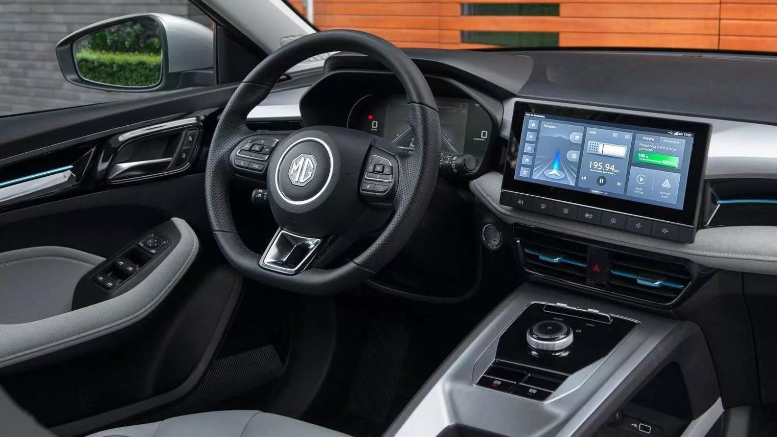 De elektromotor van de 5 Electric is 156 pk en 280 Nm sterk. Het trekgewicht is met 500 kilogram nét te weinig voor een vouwwagen of caravan, maar een fietsendrager moet zeker lukken. Op de snelweg valt op, dat de MG niet altijd even netjes rechtuit rijdt: je moet af en toe een kleine stuurcorrectie doorvoeren. Veel gevoel biedt die besturing ook niet. Het onderstel van de stationwagen staat op comfort afgesteld. Aan de achterzijde misschien een tandje te fel, want van een oneffenheid wil de auto nog wel eens ‘na deinen’. De geluidsproductie daarentegen - of het nu de rijwind of het bandengeruis betreft - blijft keurig binnen de perken. Over de zitpositie zijn we dan weer minder posi-tief: omdat je bovenop het benodigde batterijpakket zit, toren je hoog boven het dashboard uit. Bo-vendien bieden de voorstoelen weinig zijdelingse steun: in de bocht schuif je al snel tegen de deur of de middenconsole aan. Da’s geen pretje, want beide interieurdelen zijn bekleed met hard kunststof. Het is fijn dat het stuur in hoogte én diepte te verstellen valt: dat is tot nog toe niet bij iedere MG het geval. Verder is het merk ruimhartig wat het de beschikbare veiligheidsvoorzieningen aangaat. Zaken als adaptieve cruise control, actieve rijstrookassistentie en verkeersbordherkenning worden standaard meegeleverd. Er staat geen enkel assistentiesysteem op de optielijst!