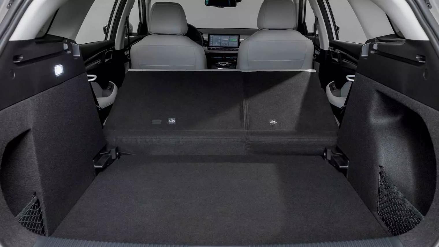 Met een carrosserievorm als die van de 5 Electric is er ruimte genoeg om je laadkabels op te bergen. Dat moet dan wel achterin gebeuren, onder de variabele bagagebodem: voorin de MG is er niet in een opberggelegenheid voorzien. De kofferbak heeft een inhoud van minimaal 479- en maximaal 1.367 liter. Wanneer je de rugleuning van de achterbank neerklapt, ontstaat er geen vlakke laadvloer. Dat beperkt het praktische gebruiksgemak. Verder pakt de hoofdruimte op de achterbank be-scheiden uit voor wie langer is dan gemiddeld. Je profiteert daar wel van een eigen ventilatierooster en diverse stroompunten. Dankzij de ontbrekende middentunnel kun je achterin drie kinderen kwijt. Tegen een meerprijs van 1.000 euro kun je de 5 Electric uitrusten met een fraai lichtgrijs interieur, dat is opgetrokken uit verschillende bekledingsmaterialen. Achter het stuur prijkt een digitale klok-kenwinkel, maar om die goed af te lezen, moet je eigenlijk een leesbril opzetten. Ook het infotain-mentscherm kampt met (te) kleine lettertjes.