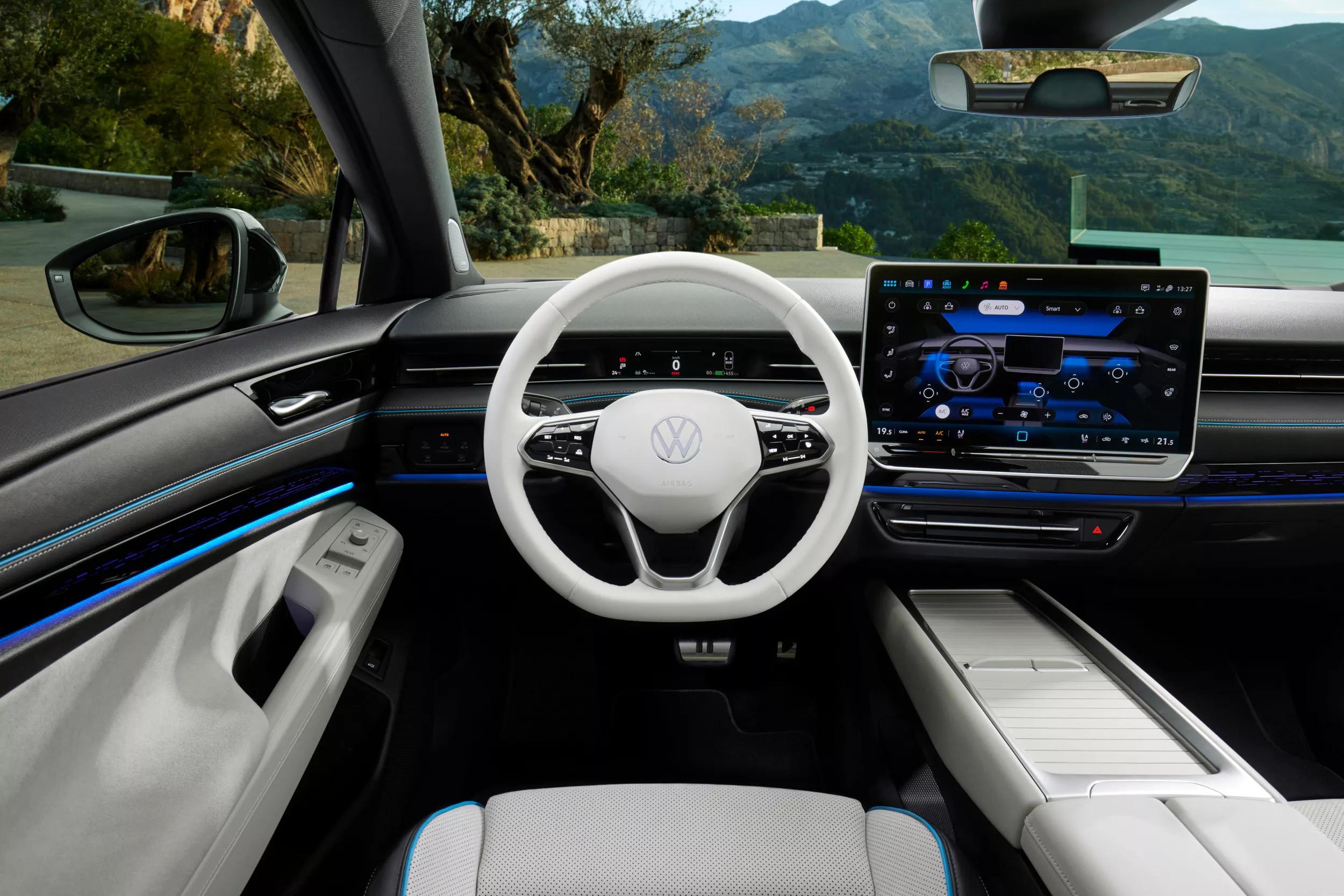 Het interieur van de Volkswagen wordt gedomineerd door een gigantisch infotainmentscherm van 38,1 centimeter doorsnee. Daarin hoef je minder te zoeken dan in andere recente Volkswagens: de ingenieurs hebben de klimaatcontrole bijvoorbeeld onderaan vast gezet. Daarnaast bestaat er de mogelijkheid om een aantal snelkoppelingen in te stellen.