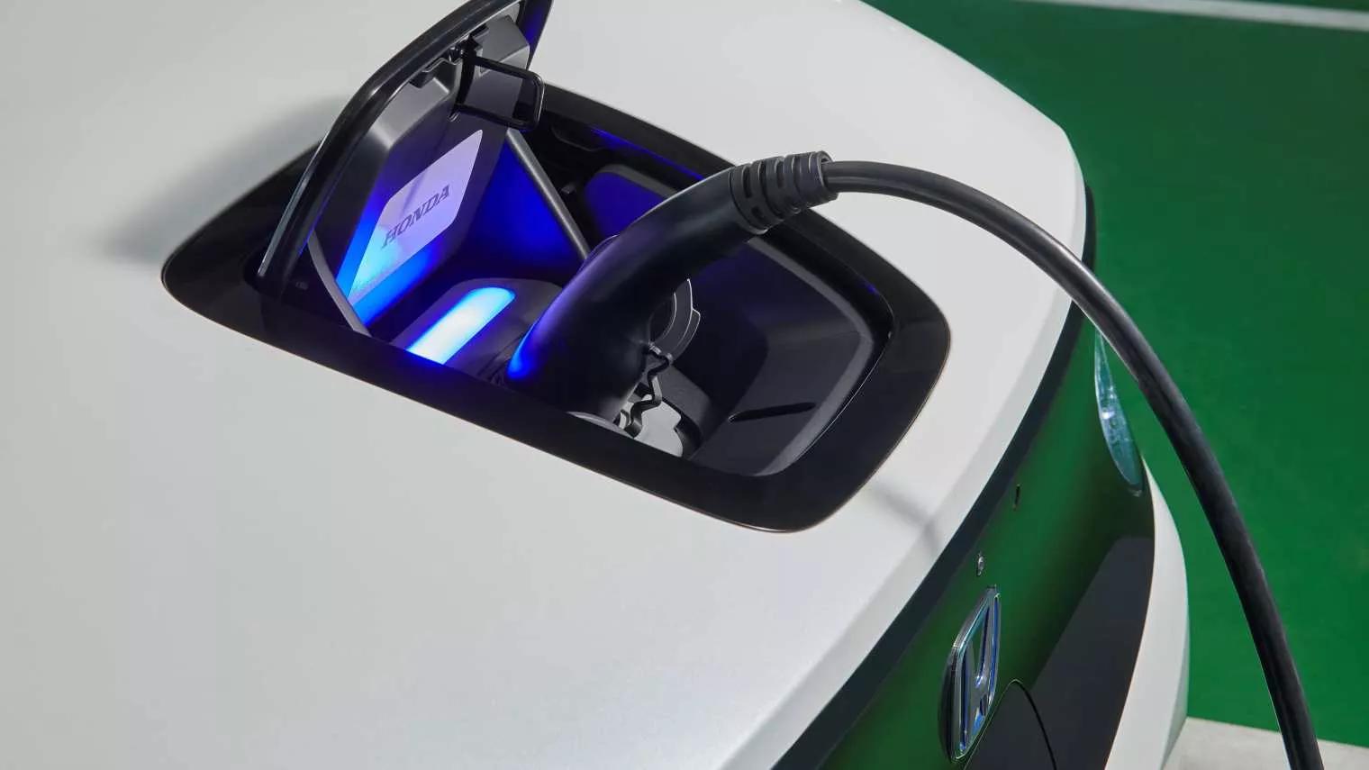 Het batterijpakket van de Honda e is 35,5 kWh groot. Daarmee is de EV op papier goed voor een rijbereik van 220 kilometer, maar bestel je een maat grotere wielen, dan slinkt die actieradius tot 205 stuks. De Japanners geven jou echter allerhande middelen om zo dicht mogelijk bij dat fabriekscijfer in de buurt te komen. We noemden al het achterwege laten van de buitenspiegels en een veelvoud aan regeneratiemogelijkheden. Tijdens onze actieradiusproef, die over een gevarieerde route van het ANWB hoofdkantoor in Den Haag naar luchthaven Lelystad en weer terug voert, kwam de zakjapanner 162,5 kilometer ver. Op de boordcomputer prijkte een restant van 8 kilometer. Als er geladen moet worden, dan kan dat gelukkig ook aan een snellaadpaal. De e heeft een CCS-aansluiting, die pontificaal op de motorkap huist. De EV weet raad met een laadsnelheid van maximaal 100 kW. Het batterijpakket is vloeistofgekoeld, waardoor je een dergelijke handeling desnoods meerdere malen achter elkaar kunt herhalen. In een half uurtje zijn de accu’s dan weer voor 80 procent vol. Aan een openbaar laadpunt ben je aanmerkelijk langer bezig: de Honda kan daar maar met een fase laden, zodat je tussen de 4- en 9 uur zoet bent. Aan een huis-, tuin- en keukenstopcontact kan het zelfs tot 19 uur duren voordat de elektrische stadsmini weer op krachten is gekomen. Er zit een applicatie bij de auto, waarmee je op afstand het laadproces in de gaten kunt houden. Ook kun je de verwarming vast inschakelen of vrienden en familie toegang tot de EV geven met een digitale sleutel.
