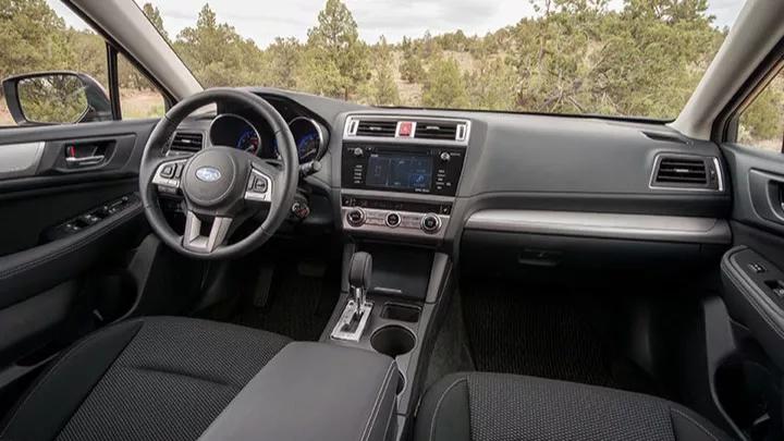 De eerste kennismaking met de nieuwe Outback is een vurige; zodra je de automaat in ‘Drive’ zet, sprint de Subaru er vandoor. Met 175 pk is de stoere stationwagen voor dit type auto niet overmatig gemotoriseerd, maar de Outback brengt dat vermogen gretig op de weg. Of je nu kiest voor de beschikbare sportmodus of een meer milieubewuste rijstand maakt voor het enthousiasme van de auto niet uit. De krachtbron is van het type boxermotor; het horizontaal geplaatste motortype is kenmerkend voor de fabrikant en draagt door een lager zwaartepunt bij aan de sterke rij-eigenschappen. Het exemplaar in onze testauto loopt op benzine, heeft 2,5-liter inhoud en mag een aanhanger trekken van 2.000 kilo. Wanneer we het ‘vreugdesprongetje’ bij de start even vergeten, is het een stille en soepele krachtbron. Standaard wordt de motor gekoppeld aan een fantastisch functionerende, traploze automaat. Zo’n CVT wil nog wel eens ‘loeien’, maar daar heeft dit exemplaar geen last van. Daarmee is de Outback een heerlijke reisauto, die ook nog eens precies stuurt. Jammer dat de stoelen voorin zijn voorzien van een hinderlijk aanwezige, niet verstelbare lendensteun, precies ter hoogte van je onderrug. Daardoor vonden wij geen lekkere zit. De eenvoudigste Outback is direct uitgevoerd met Subaru’s uitgebreide veiligheidssysteem EyeSight. De stationwagen waarschuwt niet alleen voor een dreigende aanrijding, maar kan zo nodig ook een remingreep uitvoeren. Dankzij niet een, maar twéé achter de binnenspiegel gepositioneerde camera’s reageert de Outback zowel op auto’s als fietsers en voetgangers. Verder beschikt de Subaru over een rijstrookassistent, maar die kan dan weer niet zelfstandig handelen. Je krijgt alleen een geluidje te horen wanneer je onbedoeld van rijstrook wisselt. Piepjes hoor je overigens al genoeg aan boord. De adaptieve cruise control, die mede door het EyeSight-systeem voortreffelijk functioneert, geeft een geluidssignaal zodra er een auto voor je opduikt of deze juist uit beeld verdwijnt. Dat signaal kun je niet uitschakelen en gaat bij lange ritten irriteren. Een eervolle vermelding is er voor het zicht rondom; dankzij het grote raamoppervlak valt de gezinsauto relatief goed te overzien.De Subaru Outback 2.5i 4WD van binnen