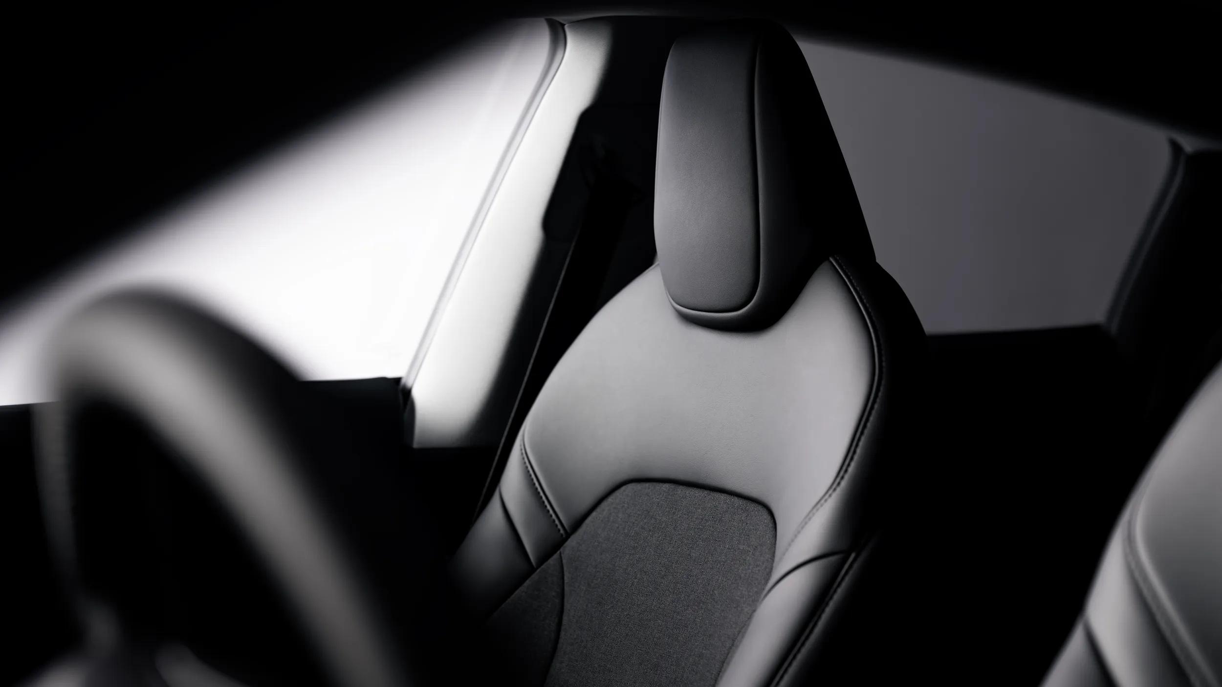 De stoelen zijn in de Standard weliswaar niet langer met leer bekleed, maar zitten daar niet minder om. De stoffen bekleding staat nog fraai ook! En de Tesla is op snelheid onverminderd stil.