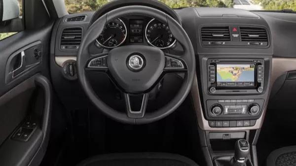 De semi-terreinwagens van het eerste uur waren vaak hoog en zwaar. Hoewel de Yeti er massief uitziet, rijdt hij als een personenwagen. De 1.2 TSI-uitvoering waarmee wij op pad gingen, stuurt zelfs aangenaam scherp. De testuitvoering had een automatische versnellingsbak die ons iets te nadrukkelijk op een laag verbruik stond afgesteld: bij stadssnelheden draait de motor nauwelijks toeren, waardoor je een indringende brom hoort. In de sport-stand reageerde de Skoda juist opgefokt. Door te kiezen voor een handgeschakelde versie ben je van die ongemakken af. Met de 1.2 TSI zelf is niets mis: bij alledaags gebruik voldoet de benzinemotor prima. Met zijn 105 pk schopte de SUV het in 2014 zelfs tot groepswinnaar in de Trekauto van het Jaar-verkiezing. Waar je ongeacht de motorisering mee zult moeten leren leven, is het lage dashboard en de vlakke stand van het stuur. Een hoge zit is aangenaam, maar je kunt natuurlijk ook overdrijven. Vanwege zijn hoekige vormgeving is de Yeti gevoelig voor windgeruis. Aan zijn beperkte veiligheidsuitrusting kun je zien dat het model alweer een paar jaartjes meedraait. Uiteraard zijn ABS en ESP standaard en kun je de Skoda eventueel uitrusten met asymmetrische koplampen en alarmlichten die automatisch aangaan bij een noodstop. Maar de concurrentie is al veel verder. Zoals Nissan en Suzuki, die gelijksoortige modellen aanbieden met een zelfstandig remsysteem op radarbasis.De Skoda Yeti van binnen