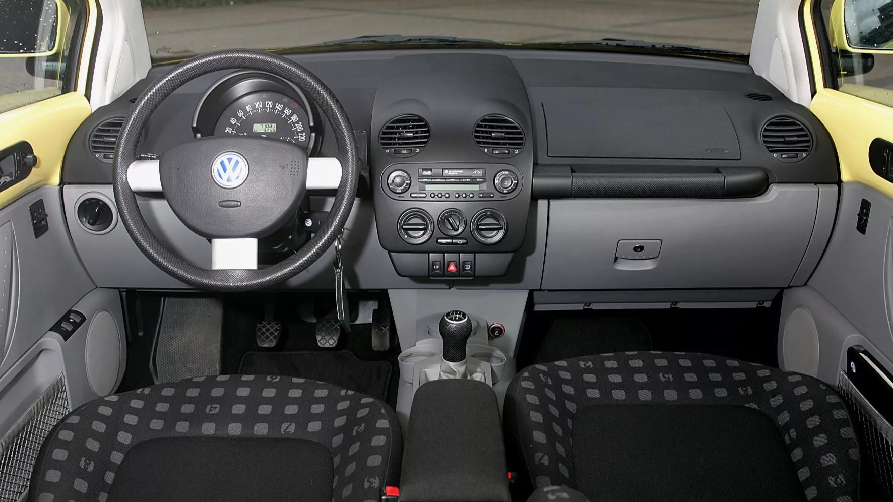 De eerste keer dat je in een New Beetle instapt, moet je beslist even wennen. Alle verhoudingen zijn gewoon heel anders dan in willekeurig welke andere auto. Het dashboard is enorm diep, de hoofdruimte voorin is enorm. Als je achteromkijkt, begrijp je direct dat de New Beetle bijna een tweezitter is. Door de aflopende daklijn is voor volwassenen achterin niet te zitten. De bagageruimte is ook minimaal. Eenmaal op weg, voldoet de New Beetle al gauw prima aan hoge eisen. Onderhuids is het gewoon een Golf en die wordt consequent geroemd om zijn prima rijeigenschappen. Die heeft de New Beetle dus ook. Hij stuurt fijn, is behoorlijk comfortabel en stil en het is ook een auto waarmee je het gemakkelijk uren achter het stuur uithoudt. Het model brengt beperkingen met zich mee, maar de New Beetle heeft beslist ook heel goede kanten, met name zijn eigenwijze karakter.