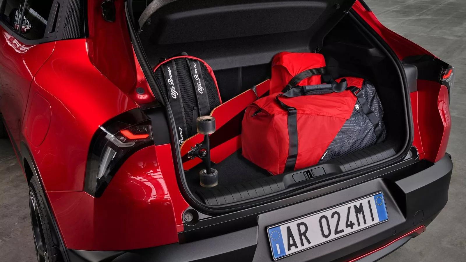 Wat vormgeving betreft ziet de Junior er uit als een echte Alfa Romeo. Vooral de boos kijkende koplampen en de gedrongen proporties staan hem goed. De grille is even wennen. Was dat altijd een verchroomde driehoek met horizontale spijlen, nu zijn die spijlen vervangen door het wapenschild uit het logo. De grote ‘snor’ die de achterzijde domineert is een verwijzing naar de vormgeving van Alfa raceauto’s van weleer. Het doet tevens een beetje denken aan de achterkant van de Kia EV6.