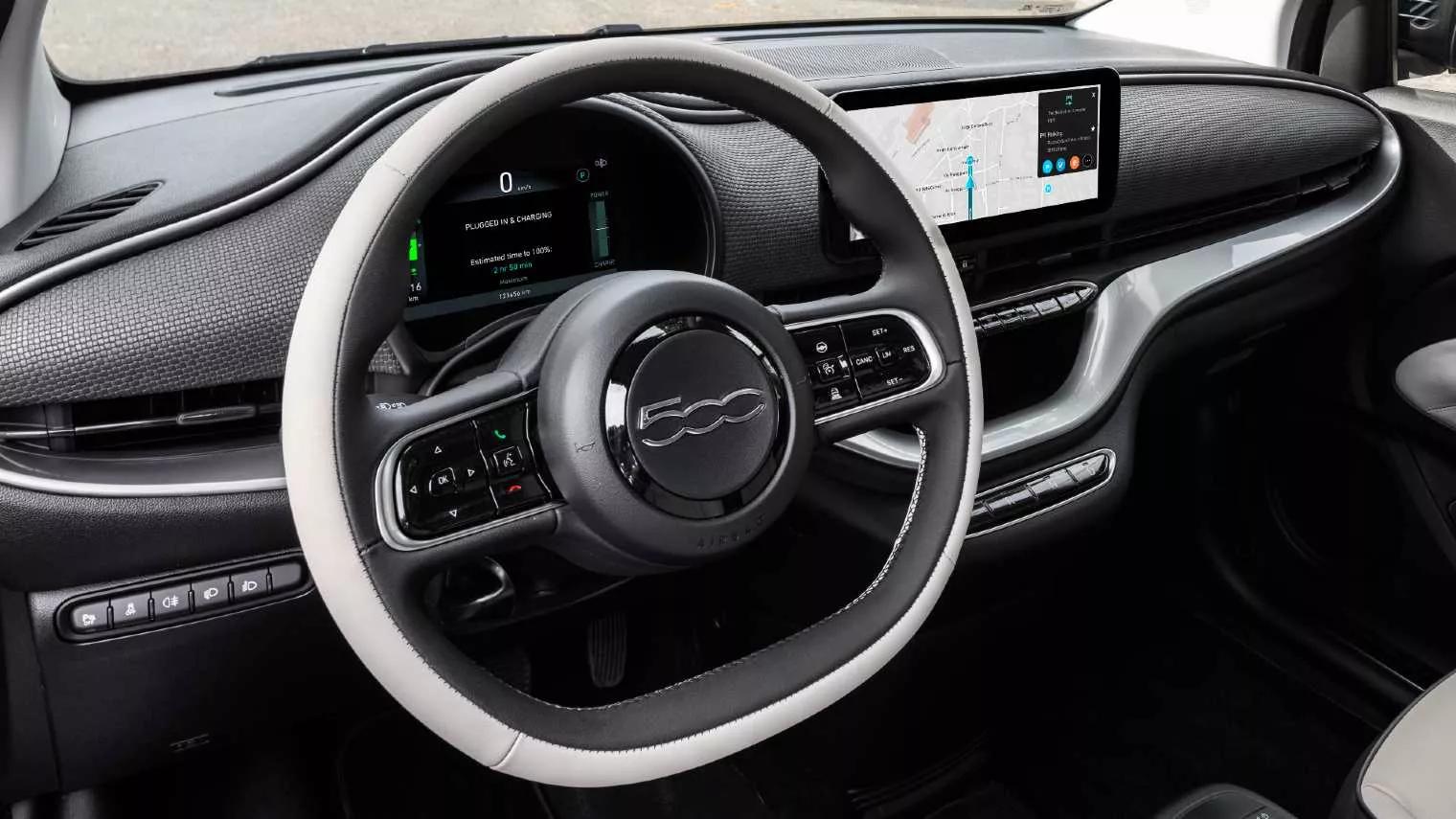 De elektrische 500 is leverbaar met twee verschillende elektromotoren. Kies je voor de krachtigste variant, dan krijg je daar het grootst mogelijke accupakket bij, met een inhoud van 42 kWh. Er bestaat ook een 23,7 kWh groot exemplaar, maar die batterij is voorbehouden aan het instapmodel, dat bovendien ‘maar’ 95 pk levert. Uiteraard pakt de actieradius in dat geval ook bescheidener uit: 180- in plaats van 320 kilometer. Je houdt weliswaar een paar duizend euro op zak, maar bent met de voordeligste 500e wel extra tijd kwijt aan de (snel)lader: de laadsnelheid bedraagt voor die uitvoering namelijk geen 85-, maar 50 kW. Om te zien hoe ver de elektrische Fiat in de praktijk komt op een lading stroom, onderwierpen wij de stadsmini aan onze vaste actieradiusproef. Zo’n rit had er met de goedkoopste versie niet in had gezeten. Bij een buitentemperatuur van 6 graden bleek het ook met het grotere batterijpakket niet te lukken: we stranden in het zicht van de haven, na 223 kilometer te hebben afgelegd. Bij vertrek gaf de Fiat op de boordcomputer nog een rijbereik aan van 260 kilometer, nadat de stadsmini een hele nacht aan de laadpaal had gestaan. Het gemiddelde stroomverbruik bedroeg gedurende onze proef 16,0 kWh per 100 kilometer. De 500e kan aan ieder mogelijk laadpunt op krachten komen. Afhankelijk van het gekozen stopcontact ben je 35 minuten tot 15 uur (!) zoet. Om zo min mogelijk te hoeven opladen, heb je in de 500e een drietal rijstanden tot je beschikking om de in de batterij aanwezige stroom optimaal te benutten. In de reguliere rijmodus wint de Fiat nauwelijks remenergie terug. In de twee overige standen doet de stadsmini dat wel, hoewel de mate van regeneratie niet dusdanig is, dat je in elke situatie tot volledige stilstand komt. Schakel je de Sherpa-modus in - vernoemd naar het Tibetaanse volk dat bergbeklimmers de Himalaya op en af begeleidt - dan gaat de verwarming uit en wil de Fiat nog maar 80 kilometer per uur. Kom je onder de 25 kilometer resterende actieradius, dan selecteert de 500 eigenhandig deze rijstand. Wanneer dat gebeurt, wil je dus niet op de snelweg rijden!