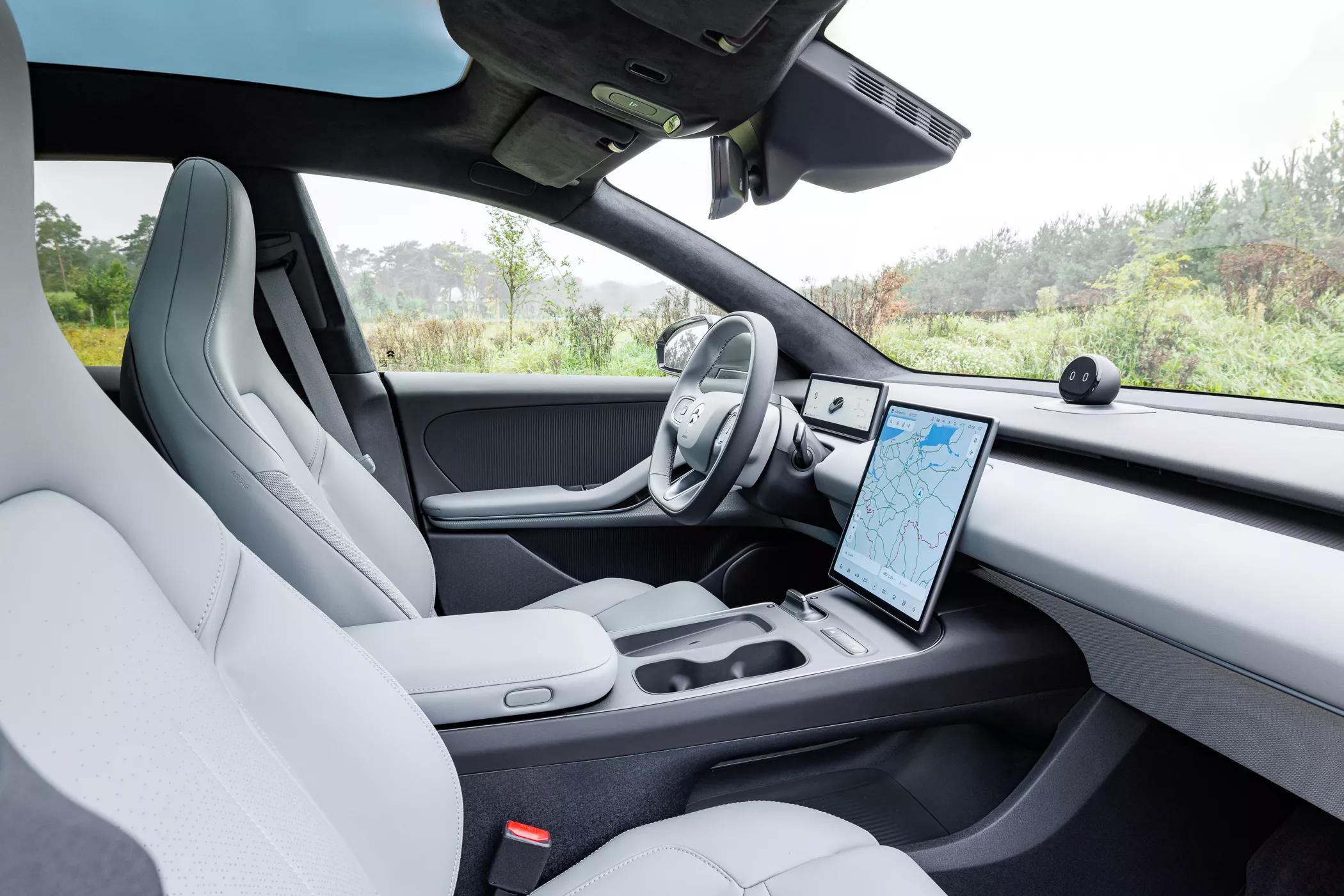 Dat geldt helaas niet voor de hoofdruimte. Tenminste: niet wanneer je kiest voor een variant met een glazen dak. En omdat de achterbank laag in de auto staat, ondervind je weinig steun aan je benen. Dat laatste is een beetje een elektrische auto-kwaal. Ook de Hyundai en Polestar hebben er last van. Wanneer je langer bent dan 1.90 meter houdt de hoofdruimte ook niet over.