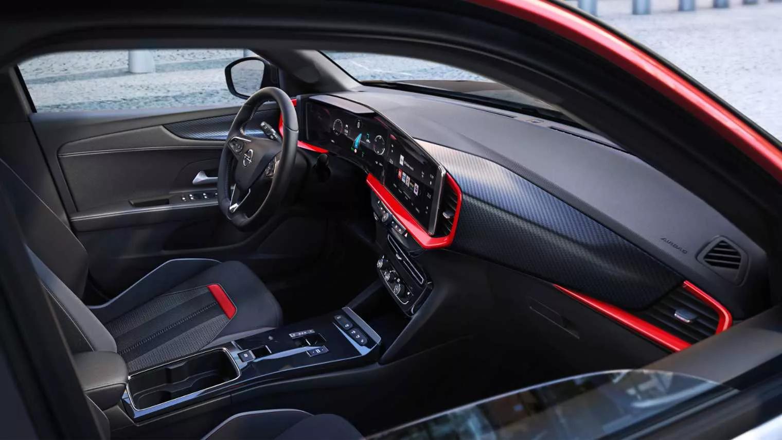 De Opel heeft een digitaal instrumentarium, bestaand uit twee grote schermen. De radio en verwarming kun je nog met een ouderwetse knop bedienen, al ben je voor de keuze van de uitstroomopeningen toch weer op een aanraakscherm aangewezen.