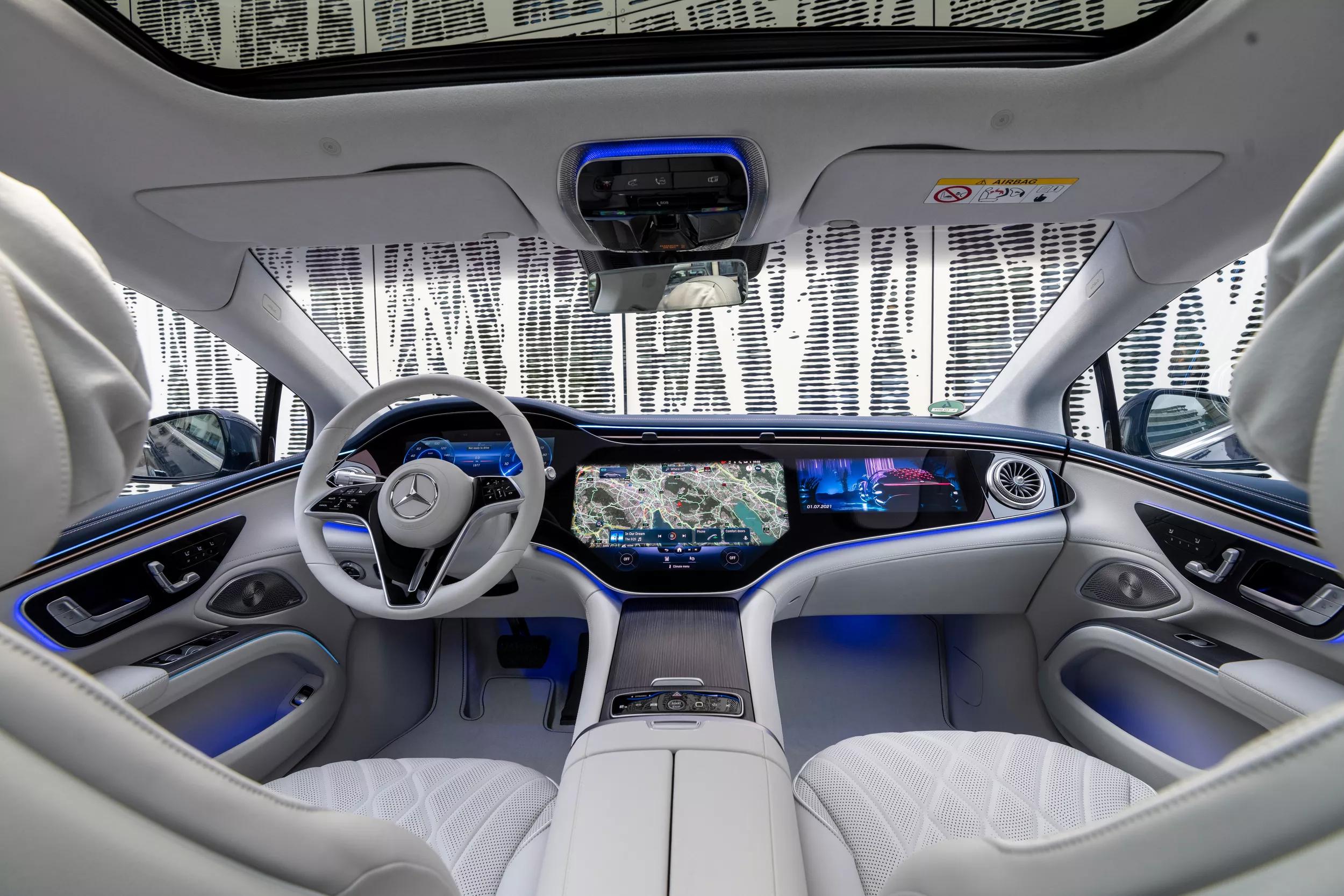 Om je te helpen optimaal gebruik te maken van de meegebrachte stroom, beschikken de testkandidaten over verschillende rijstanden en regeneratiemogelijkheden. Wanneer je in de Mercedes kiest voor de ‘Intelligente recuperatie’, gebruikt de EQS de camera van jouw aanvullende veiligheidsuitrusting en combineert die gegevens met je locatie en de ingestelde bestemming op het navigatiesysteem. Op basis van die informatie bepaalt de limousine of hij je laat uitrollen wanneer je het stroompedaal loslaat, of dat hij remenergie laat terugvloeien in het batterijpakket. Het is de enige modus waarin je de EQS met één pedaal kunt rijden: de BMW en Lucid bieden daarvoor ook een mogelijkheid aan.