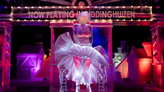Van ijsblok naar kunst. Op het Nederlands IJsbeelden Festival in Biddinghuizen vind je de mooiste ijssculpturen van het land, gemaakt door ijskunstenaars uit de hele wereld. Op het festival vind je zowel verbluffende mini-sculpturen als gigantische ijskunstwerken. Je gelooft werkelijk je ogen niet! Dit jaar wandel je over een ijskoude filmset met het thema 'Let’s go to the movies: IJsbeelden van het witte doek'.
