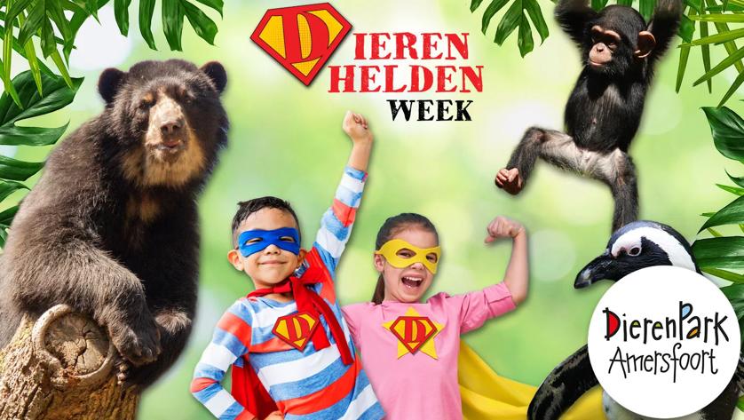 Ontdek tijdens de Dierenhelden Week met diverse activiteiten hoe jij een Dierenheld wordt. Ga mee op een spannende missie om diersoorten in binnen- én buitenland te beschermen. Je ontdekt waarom de chimpansee, zwartvoetpinguïn en brilbeer jouw hulp nodig hebben, wat het DierenPark Amersfoort Wildlife Fund al doet om de natuur te helpen en hoe jij jouw superkracht kunt inzetten om de dieren in de natuur te beschermen. Haal stempels op de Dierenhelden Markt, speel het Dierenhelden Spel, doe nog meer dierenkennis op bij Dierenheld Vertelt, volg de Dierenhelden Rondleiding, laat je voorlezen bij Dierenheld Leest Voor en test je kennis in het DierenDoolhof.