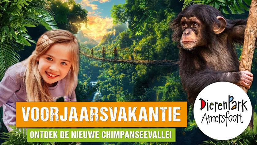 Nieuw: Chimpanseevallei. Ontmoet de chimpansees in de nieuwe Champanseevallei. Tussen de bomen ga jij op avontuur. Kom erachter waarom het bos zo belangrijk is voor deze mensapen en ontdek waarom deze apensoort zo bijzonder is. Maar pas op: hun leefgebied is in gevaar. Kom in actie.