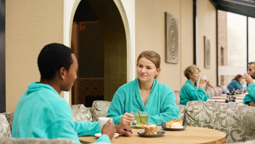 Kom tot rust in de Rozensauna, geniet van de stilte in de Stiltesauna of bewonder de tuin vanuit de Panoramasauna. Neem een verfrissende duik in het verwarmde Amarantos buitenbad, geheel in Mediterrane stijl. Beleef een bijzonder wellnessritueel of laat je verwennen door de beauty specialisten.