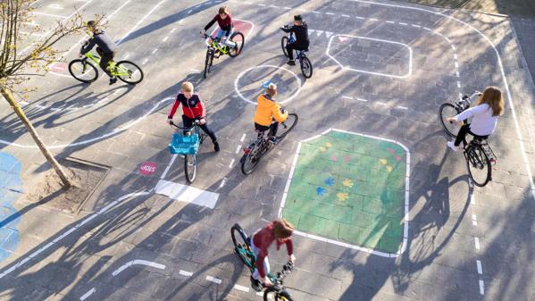 - De aanleg van een verkeersplein op een schoolplein.