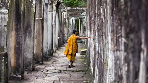 Angkor, dat letterlijk ‘hoofdstad’ betekent, was dat ten tijde van het Khmer-rijk tussen de 9e en de 12e eeuw. Het gebied is twee keer zo groot als Amsterdam en er staan een paar honderd tempels. De 12e-eeuwse Angkor Wat, is voor velen dé reden om naar Cambodja te gaan. Het is het grootste religieuze gebouw ter wereld en beslaat – inclusief buitenmuren en gracht rondom – een oppervlakte van bijna 2 vierkante kilometer. Vanaf de voorzijde is de eerste aanblik op Angkor Wat, met de weerspiegeling in de aangrenzende vijver, overweldigend. Bij het diffuse licht en met de optrekkende mistflarden rond zonsopgang laat de tempel zich op zijn allermooist zien. Het trekt dan ook veel toeristen.