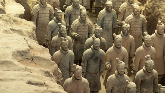 Qin Shi Huangdi, de eerste keizer van China, liet behalve de Chinese Muur ook een enorme wereld bouwen onder het aardoppervlak. Net buiten Xi’an staat zijn terracottaleger: meer dan achtduizend levensgrote beelden. Ze zijn handgemaakt zonder mal waardoor geen enkel figuur dezelfde gezichtsuitdrukking, kleding, wapen of zelfs haardracht heeft. Ze beschermen de keizer’s graftombe, die niet veel verderop staat. Een goed beschermd geheim, tot ongeveer een halve eeuw geleden. Pas in 1974 ontdekten een paar boeren per toeval de beelden. Dit bleek de grootste archeologische vondst van de 20e eeuw.