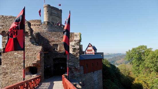 Wandel vanuit het centrum van Brodenbach 2,5 kilometer richting het zuidoosten, naar het 12-eeuwse Ehrenburg-kasteel in de deelgemeente Ehrenburgertal. Hierbij passeer je de Erhbachklamm, een kloof met bemoste rotsen, kleine watervallen en houten loopbruggen. Betreed aan het einde van de route het Ehrenburg-kasteel. In dit voormalige fort loopt gekostumeerd personeel rond en er vinden veel middeleeuws georiënteerde evenementen plaats. Zijn de weergoden je goed gezind, dan kijk je vanaf de kasteeltoren – ongeveer 300 meter boven de zeespiegel – tot aan de aangrenzende Eifel-regio en het Hunsrück-gebergte.