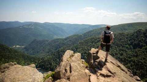 In de lagere regionen rijd je door dichte dennenbossen, waarna er een heide- en toendra-achtig gebied volgt in de overgang naar de kliffen rond de pieken. Bij het uitkijkpunt Gazon du Faing heb je een weids uitzicht over de Rijnvallei en de als decorstukken achter elkaar geplaatste rollende heuvels van de Vogezen. Spot onderweg gemzen die zich, balancerend op de rotsen, in dit gebied bijzonder goed thuis voelen.