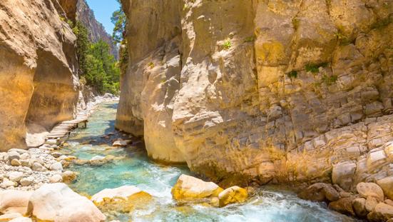 Rijd naar het rustige zuiden en wandel door de smalste kloof ter wereld. De Samaria-kloof is op sommige plekken maar 4 meter breed en de rotswanden meer dan 500 meter hoog. De 16 kilometer lange wandeling door de kloof begint in het dorp Omalas. De route eindigt in het kustdorpje Agia Roumeli, waar je uitzicht hebt over de ruige baai. Tip: maak de wandeling in april of mei, wanneer de temperaturen nog mild zijn (rond de 19 graden) en de veldbloemen de paden opfleuren.