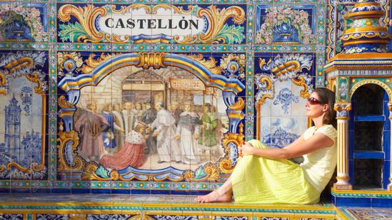 Struin je door het Maria Luisa park, dan kom je ineens op een enorm imposant plein uit: Plaza de España, met 7000 kleurrijke keramische tegels. Speciaal aangelegd ter ere van de Ibero-Amerikaanse tentoonstelling van 1929, om de band tussen Spanje, Portugal en haar kolonies te vergroten. Onder andere ontworpen door de in Sevilla geboren architect Aníbal González. Het was een kostbaar project: op den duur werkten er wel duizend mensen tegelijk aan. Het enorme plein heeft een doorsnee van 200 meter en is omringd door gebouwen. Je kunt ze helaas niet van binnen bezichtigen, maar ook van buiten valt er genoeg te zien. Zoals de typische beschilderde keramieken wandtegels. Ook wel azulejos genoemd.