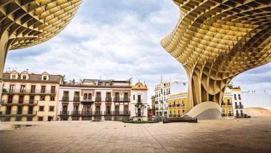 Een van de meest moderne - of eigenlijk opvallende – bezienswaardigheden van de stad staat op Plaza de la Encarnación: het Metropol Parasol. Door locals ook wel Las Setas (de paddenstoelen) genoemd. De gemeenteraad schreef destijds een wedstrijd uit voor de renovatie van het plein, en dit was het winnende project. Het houten bouwwerk uit 2011 is ontworpen door de Duitse architect Jürgen Mayer en zorgt voor een verrassend contrast met de historische gebouwen van de stad. Deze golvende structuur van zes enorme parasols is de grootste houten constructie ter wereld, met afmetingen van 70 x 150 meter en een hoogte van 28 meter.