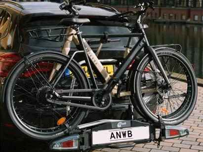 Deze ANWB Touring fietsendrager is kantelbaar en inklapbaar, geschikt voor 2 (elektrische) fietsen.