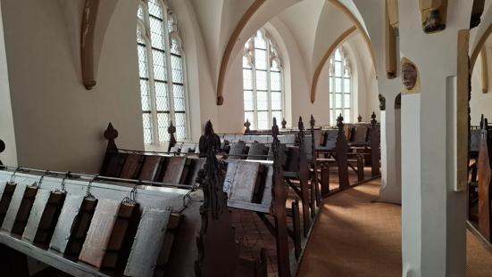 De Broederenkerk werd gebouwd rond 1306‑1307 door de Dominicanen. Het is een van de best bewaarde kloosterkerken van Nederland. Binnen zie je hoge gotische bogen, slanke zuilen en kleurrijke 16e‑eeuwse gewelfschilderingen. De houten klokkentoren uit 1772 geeft het gebouw een bijzonder silhouet. In de vloer liggen oude grafstenen en langs de zijkant vind je resten van de kloostergang. De kerk is nog steeds een plek om – net als de Dominicanen deden - te leren en te zoeken naar wijsheid. Het is nu een moderne bibliotheek in een eeuwenoud jasje.
