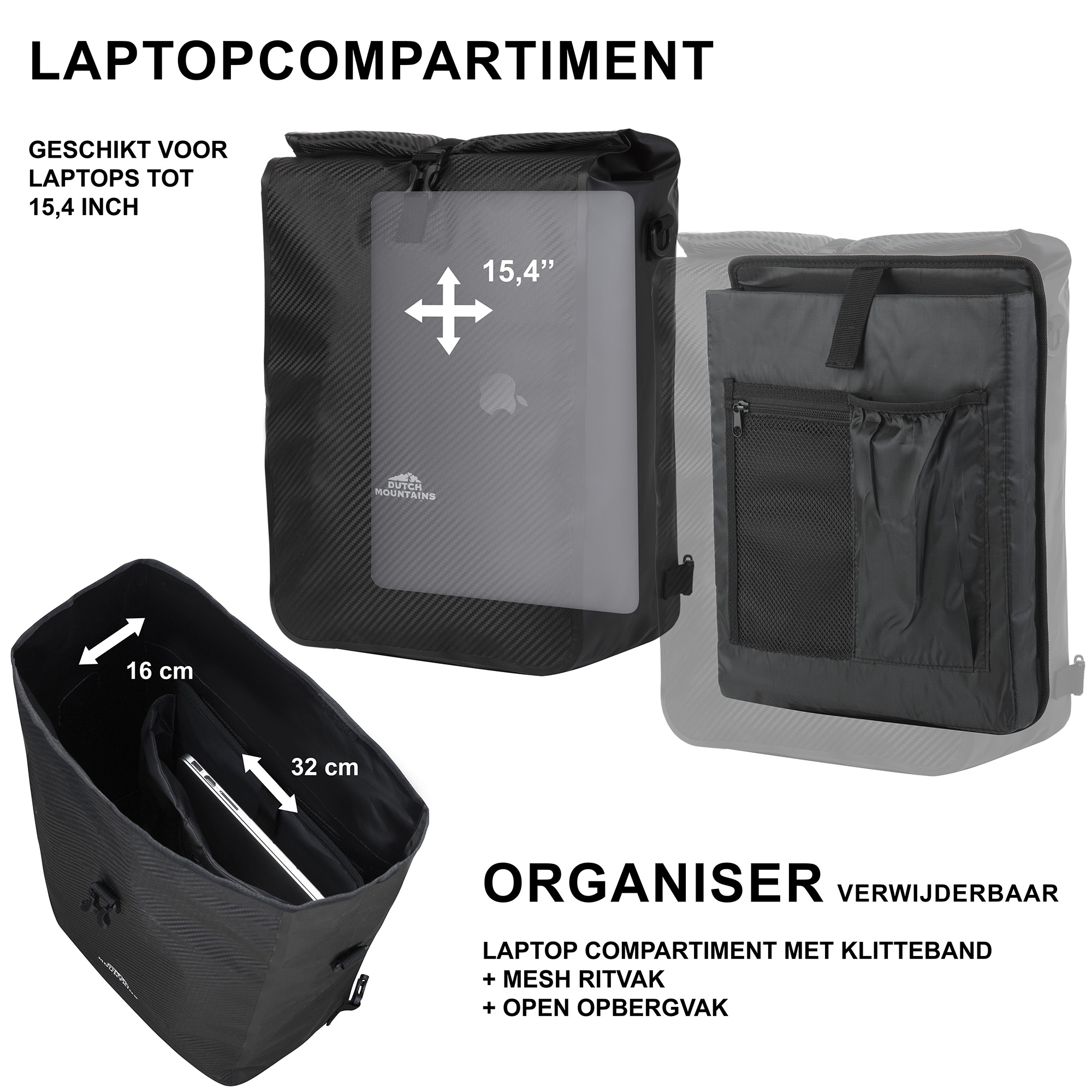 De tas is gemaakt van hoogwaardig tarpaulin (vrachtwagenzeil). Deze waterdichte fietstas met rugtasfunctie is ideaal voor woon-werkverkeer, boodschappen, school, sport en langere fietstochten. Geschikt voor een gewone fiets, elektrische fiets, e-bike én sportfiets. Reflectoren rondom zorgen voor zichtbaarheid in het donker.