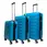 Mooie 3-delige set van hardschalen ABS koffers. De koffers zijn binnenin gevoerd en voorzien van tussenschot met rits. Met de pakriemen en het extra ritsvak binnenin de koffer kun je je bagage en kleine reisaccessoires overzichtelijk opbergen. Alle koffers hebben een rits rondom, een vast cijferslot op de zijkant van de koffer en een adreslabel. Op de bovenkant en zijkant (bij handbagage alléén op bovenkant) zit een handvat. De uitschuifbare trekstang en het 4 wiel-systeem zorgen voor optimaal reiscomfort.