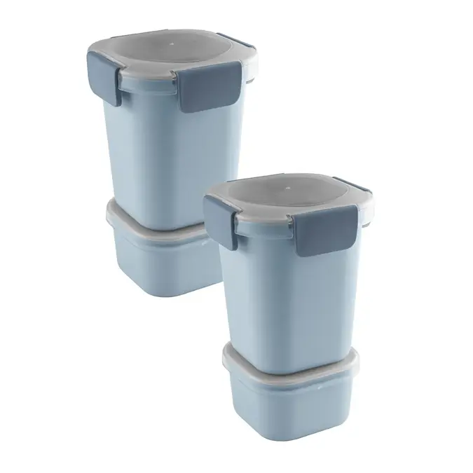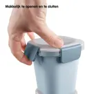 Zuivel, shakes, smoothies of zelfs soep meenemen wordt ineens een stuk makkelijk met deze superhandige, trendy lunchbeker! Deze hippe lunchbeker is onderdeel van onze Sigma home serie. Dat is te zien aan het moderne, Scandinavische design, de hoge kwaliteit en de trendy kleuren.De beker is uitgerust met de meest handige snufjes en features. Zo bestaat deze beker uit drie losse elementen. Een ergonomische buitenbeker (0,7L) en binnenbeker (0,5L) en een los bakje wat aan de onderkant vast te klikken is. Dankzij het dubbelwandige systeem blijft voedsel langer koel of juist langer warm als je het meeneemt. Daarnaast wordt hij aan de buitenkant niet heet of extreem koud vanwege deze extra isolatie.De stevige sluitclips zorgen dat het deksel nergens heen kan. Het deksel is transparant zodat je de inhoud kunt zien.Het losse bakje bevestigt aan de onderkant is met een simpele draaibeweging los te klikken. Daardoor hoeft u de beker nooit op zijn kop te houden om het bakje los te krijgen bijvoorbeeld wanneer de muesli in de beker gedaan moet worden. De kleine bakjes zijn als uitbreiding ook verkrijgbaar in een set van 3.De beker kan ook gebruikt worden om bijvoorbeeld soep in te verwarmen. Bij magnetron gebruik (tot 100°c) dient het deksel verwijderd te worden.