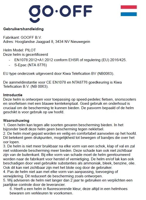 | Verantwoordelijke marktdeelnemer in de EU | GOOFF B.V. |