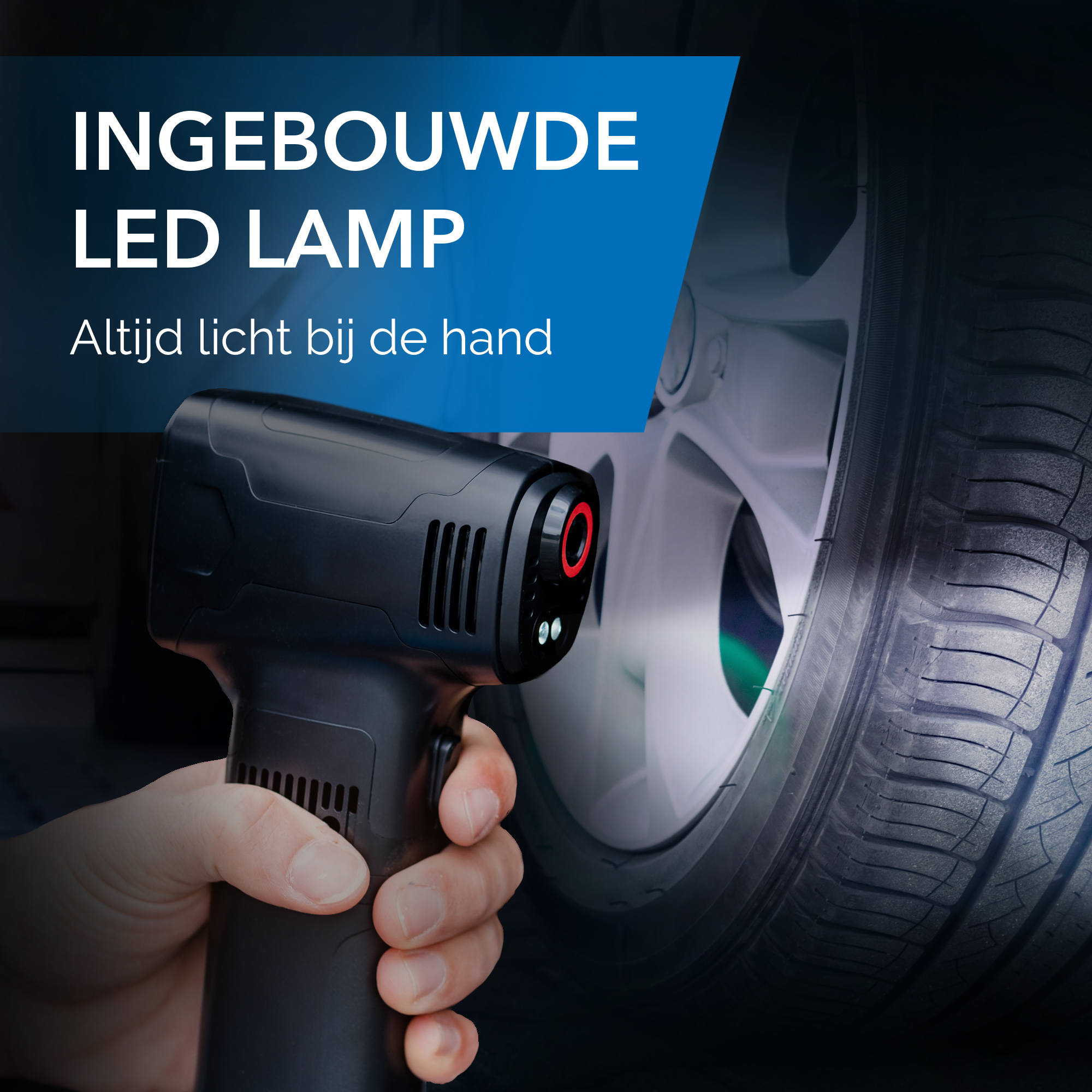 - Stopt automatisch bij het bereiken van de gewenste bandenspanning