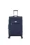Stoffen koffer met verstelbare aluminium trekstang, 4 dubbele zwenkwielen en handvatten op boven- en zijkant. Binnenin voorzien van spanbanden, ritsvak en expandable rits voor extra volume. Voorzien van 2 ritsvakken aan de voorkant en vast TSA-cijferslot.